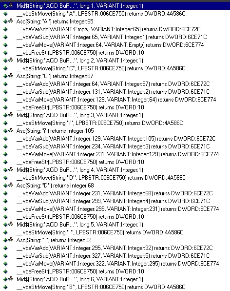 __vbavaradd(VARIANT:64,VARIANT:Integer:67) <== this add the ascii value to the last final